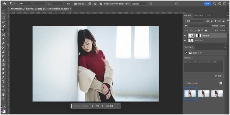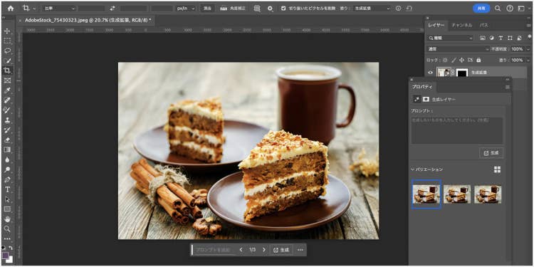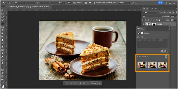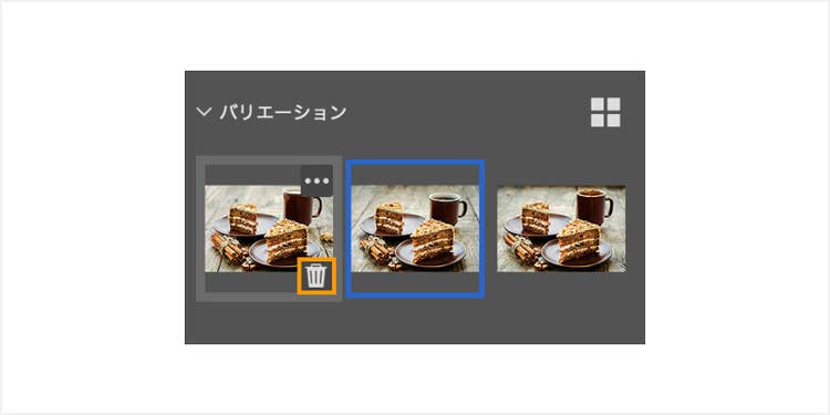 プロパティパネルの「バリエーション」には合計3枚のバリエーションが表示されるので、この中からより自然なものを選択することも可能です。