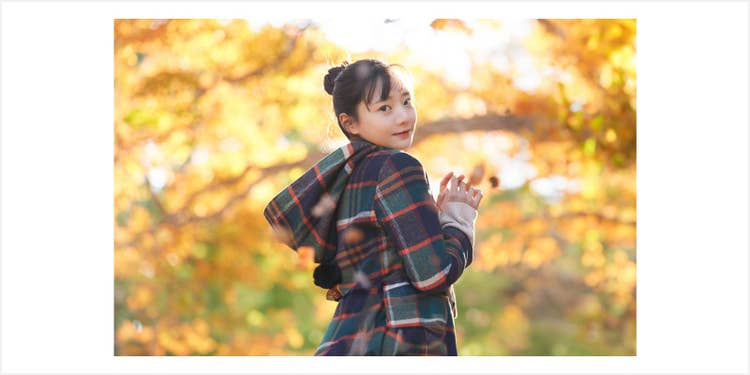 そんなときは、背景を拡張することで被写体の位置を調整しましょう。例えば以下の例では、右寄りに写っている女性が中央に来るように背景を拡張しています。