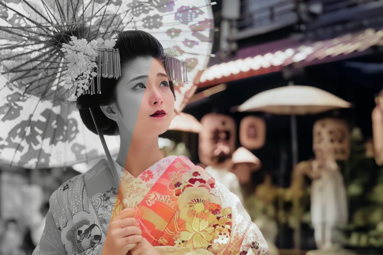 先ほど紹介した「カラー化」の機能と組み合わせれば、補修した白黒写真をカラー化して、当時の雰囲気をより鮮明な状態で再現することも可能です。