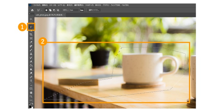 今回は「マグネット選択ツール」を使ってコーヒーカップを囲んで選択しました。