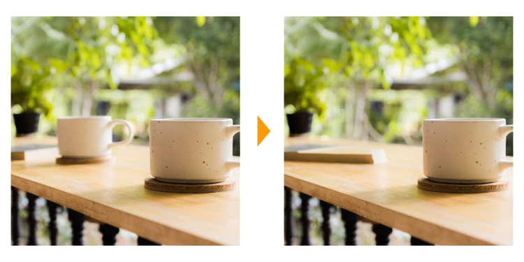 このとき、消したい要素に関連する部分、今回ならコーヒーカップの影まで選ぶと、きれいに削除されやすいです。