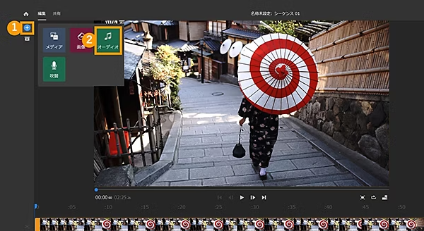 Adobe Premiere Rushには、高品質な音楽が最初から入っているため、音楽を別途購入しなくても、クオリティの高いBGMや効果音を挿入できます。
