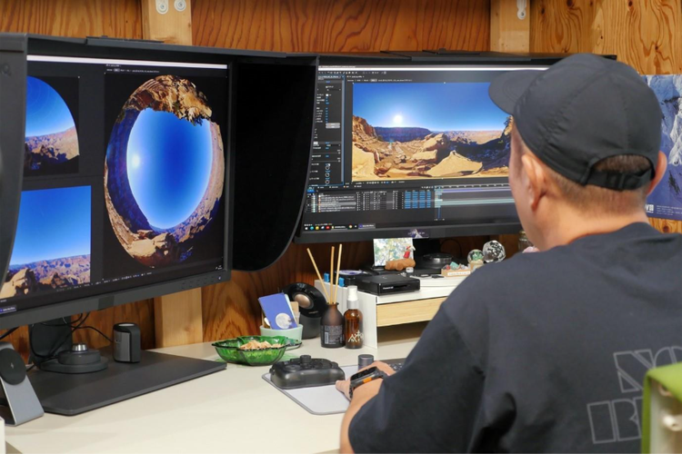 『Northern Lights –極北の夜空に輝く光の物語-』や『ヒーリングアース』をはじめ数々の作品を支えてきたのは、独自に磨き上げたVR編集の技術。迫力あるVR映像やドーム映像は、いったいどのように作られているのでしょうか。撮影した素材をどう組み合わせ、どう確認し、そしてどんなツールで仕上げているのか。その裏側のワークフローと、日々頼りにしている編集機能について伺いました。