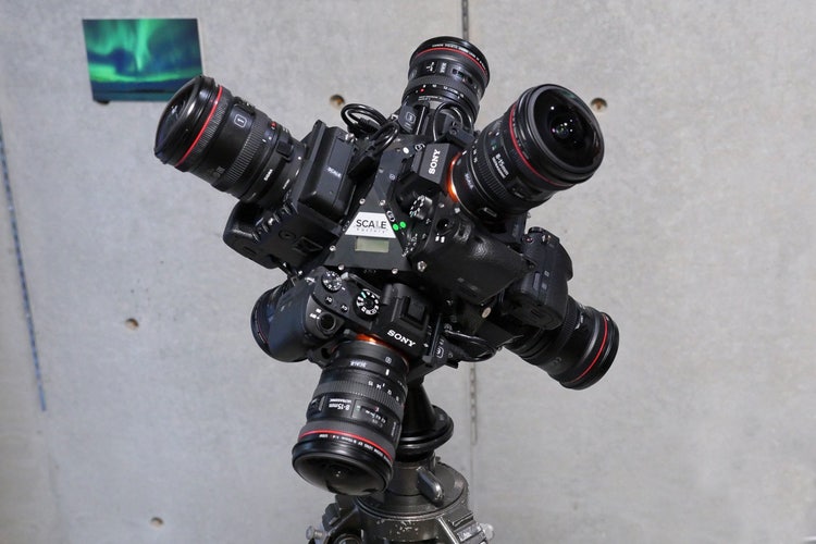通常はVR専用カメラを使う方が圧倒的に多いのですが、僕らは一眼レフカメラを6台使って組んだ自作のカメラシステム「MAKIBISHI」を使っています。タイムラプス撮影では約22K(22,000×11,000ピクセル)の解像度で撮影できて、動画の場合はステッチ後のサイズが11Kほどになります。最近は11Kで撮影できるコンシューマー製品も登場してきたので、それも取り入れるようになりましたが、以前はこのMAKIBISHIだけを使って動画もタイムラプスも撮っていました。