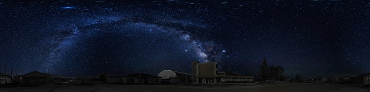 この風景を僕らが高解像度で360度撮影して、電信柱や建物をひとつひとつ切り抜いて合成したら、とても綺麗に仕上がったんです。その結果、リアルな校庭から星空を見上げているような体験を再現できて、学校の先生や子どもたちに「こんなにきれいな映像は見たことがない」と驚かれました。子どもたちの食いつきが全然違うんです。それらの切り抜き作業はすべて{{photoshop}}と{{after-effects}}の連携で行っています。