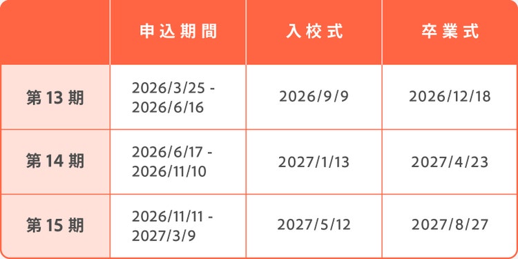 - お申込みは一入校期にあたりお⼀⼈様原則1回までとなります。同じAdobe IDで複数の申込みが確認された場合、最新のお申込内容を対象とさせていただきます。