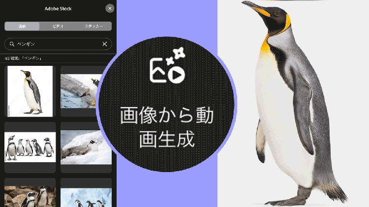 「画像から動画生成」を使えば、写真をもとに映像を生み出すこともできます。この機能を使えば、{{adobe-stock}}からダウンロードした写真素材も映像に早変わり。クリエイティブの可能性は一気に広がります。※「生成クレジット」が必要です。
