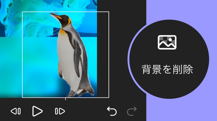 映像に使える素材は動画ファイルだけではありません。複数の写真を変化させながら切り替えるだけでも映像作品をつくることはできます。写真を切り抜きたいときは「背景を削除」を使えば、見せたい被写体だけを映像に取り入れることができます。