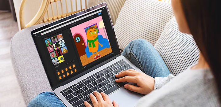 VTuberとして動画を配信するには、キャラクターを動かすためのソフトが必要です。Adobe Character Animatorでは、パソコン内蔵のカメラとマイクだけで2DCGキャラクターを動かすことが可能です。アバターのテンプレートを使えば、一からアバターを作らなくても簡単にVTuberの活動を始めることができます。