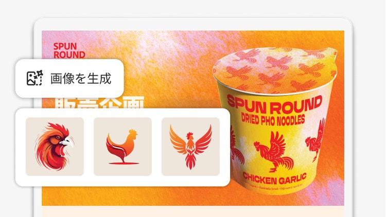 Adobe ExpressでAIによるカスタム画像を生成し、コンテンツをブラシュアップして、作品に命を吹き込みましょう。