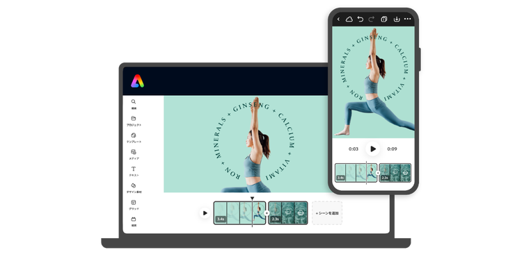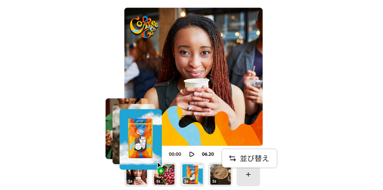 Adobe Expressの豊富なデザイン素材や安心して商業利用できるAIを活用して、魅力的なコンテンツをかんたんに作成できます。