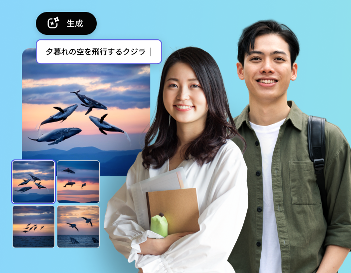 生成AIと直感的な編集ツールが融合したAIアシスタント(Beta) で、手軽にコンテンツを作成。気になる部分は大胆に変えつつ、残したい要素はそのままに。数量限定で提供中1