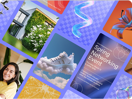 Adobe Expressの豊富なデザイン素材や安心して商業利用できるAIを活用して、魅力的なコンテンツをかんたんに作成できます。