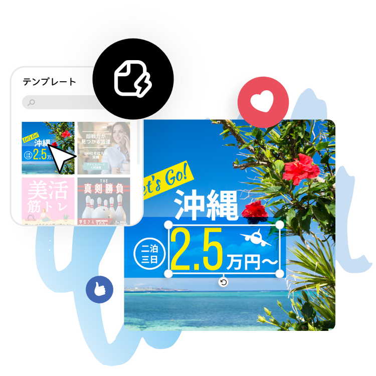 誰でもFacebook広告を作成できますが、競争相手が使用しているのと同じシンプルなツールを使っている限り、広告のユニークさをアピールすることはできないでしょう。Adobe Expressは、いくつかのカスタマイズオプションを通して自由な創造性を提供、ライバルに差をつける際立つ広告の作成を可能にします。 変更したテキスト、背景、画像、配色、位置、レイアウトは、プレビューパネルに表示してすぐに確認できます。 あらゆるデザイン機能を試すことで、ユニークで目を惹くデザインの広告に仕上げることができます。
