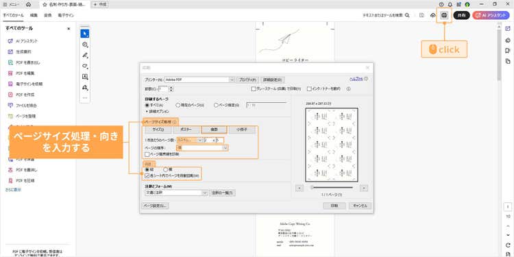 ここではAdobe Acrobatの「PDFを結合」機能を使って、A4サイズの用紙に名刺を10枚印刷する方法をご紹介します。