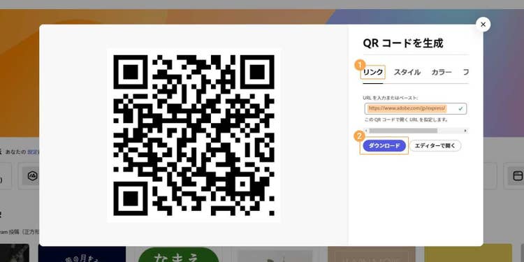トップ画面に戻り、「QRコードを生成」をクリックするとポップアップウィンドウが開きます。