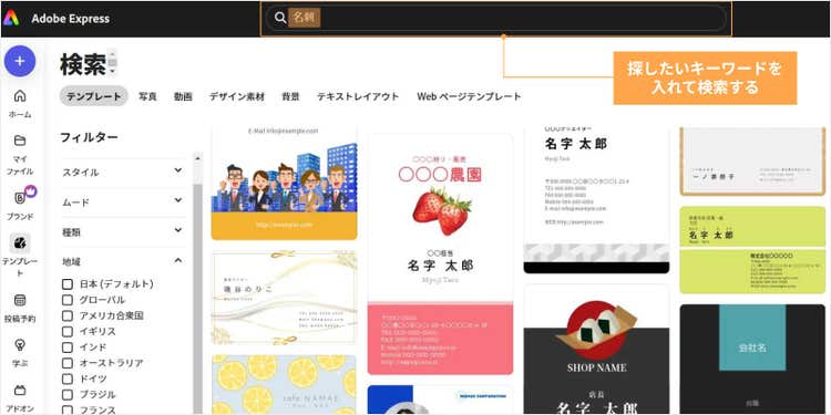 無料デザインツールAdobe Expressのテンプレートを使って名刺をデザインする方法