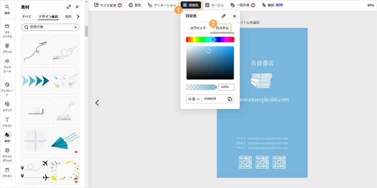 続いて、裏面と表面のバランスを考えながら、裏面の背景色を変更しましょう。