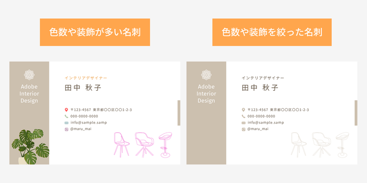 企業やブランドカラー、ロゴの色などに合わせて統一することで、情報が見やすくなり、印象に残りやすい名刺になります。
