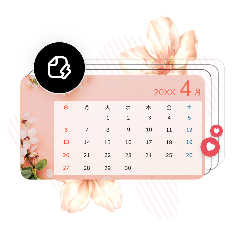 簡単なカレンダー作成ツールを使えば、どんな画像でもテキストやユニークなグラフィック要素と組み合わせたり、カレンダーのテンプレートを使って簡単に作成することができます。Adobe Expressを使えば、初心者でもデザインのプロでも、魅力的なカレンダーを簡単に作ることができます。
