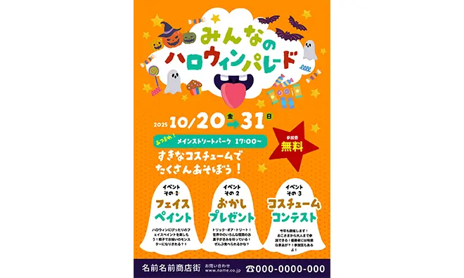 今回は例として、「ハロウィンのイベント告知」のチラシを作成します。