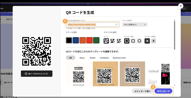 なお、Adobe ExpressのQRコード生成機能では、他にも次のような項目を設定できます。