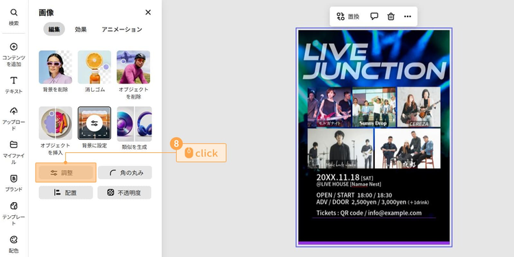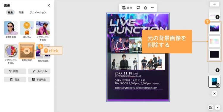 次は、背景をライブのイメージに合う雰囲気に変えてみましょう。