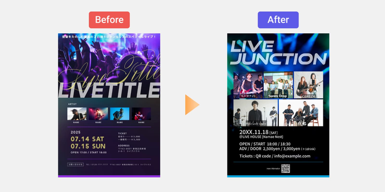 ここまでご紹介したコツを意識すれば、誰でも魅力的なライブフライヤーを実際に作れるようになります。