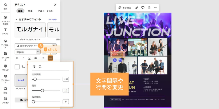 そのため、イベントのタイトルやテーマなどメインの要素には、ひと目で読めて、かつライブの世界観を演出できるフォントを使いましょう。