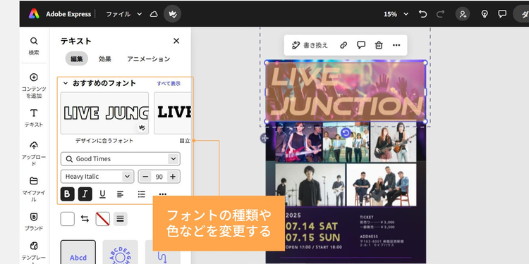 さて、次の章では、実際にAdobe Expressを使ってライブフライヤーを作成してみましょう。