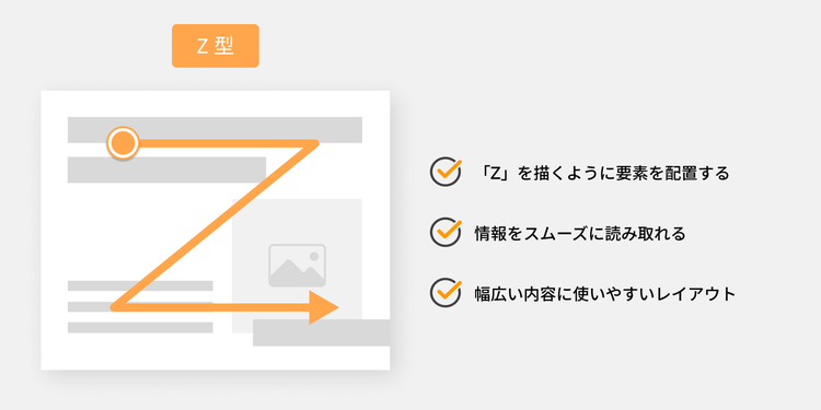 横書きレイアウトでは、視線は左上から右上、左下、右下へと移動する「Z型」の動きをします。