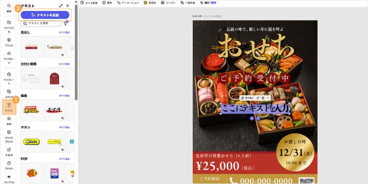 「自分でおせちのチラシを作りたい。でも、洗練されたデザインに仕上げる自信がない」