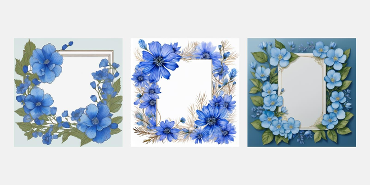 例えば、「花柄 青色のフレーム」といった指示文(プロンプト)を入力するだけで、自動でフレームデザインが作成されます。