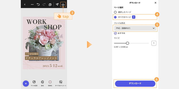 スマホに保存する場合は、「ダウンロード」アイコンをタップします。