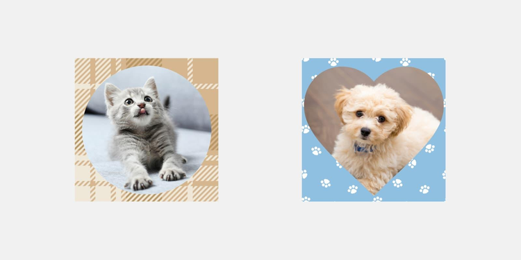 写真やイラストを円形・ハート形など、好みの形に切り抜き、背景となる画像の上に配置します。