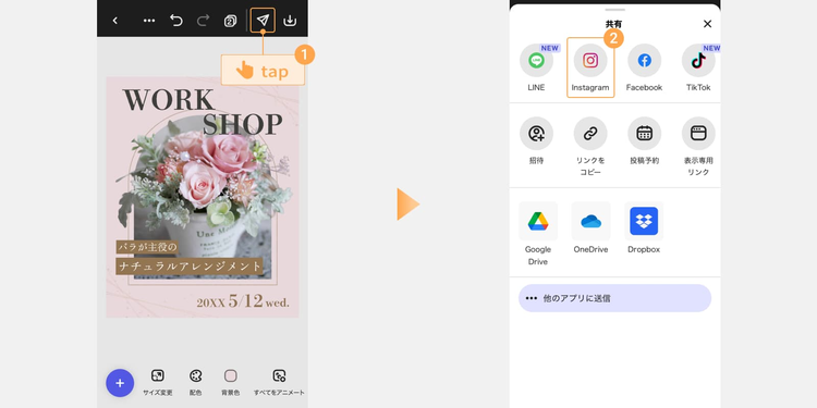 今回は例として、フラワーアレンジメントのワークショップの集客に使えるInstagram投稿の作成手順を解説します。