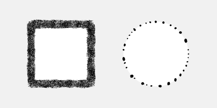 正方形や円形の図形、または花やフルーツなどのイラストを並べて縁取りにすると、デザイン全体や写真を彩るフレームとして活用できます。