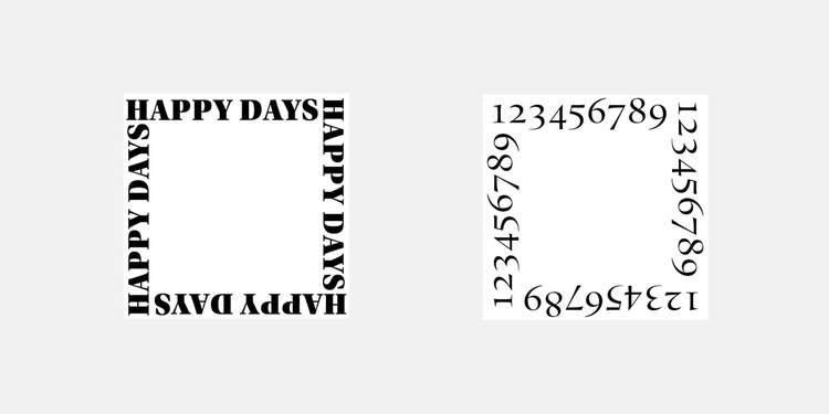 アルファベットや数字を繰り返し並べると、フレーム風の装飾を手軽に作れます。