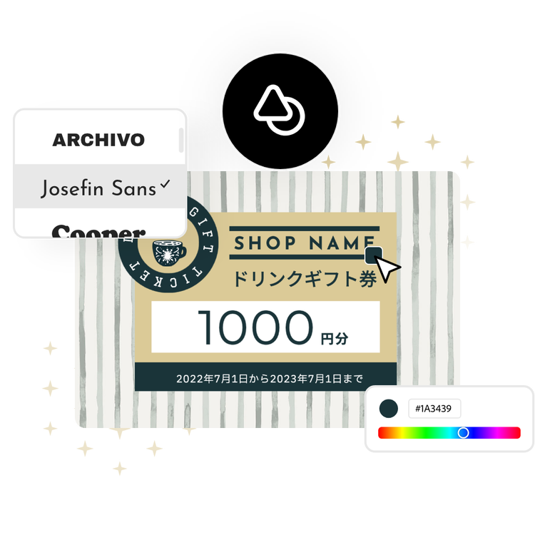 プロがデザインしたテンプレートを使って、ギフト券を作成することもできます。写真、アイコン、ロゴ、自分好みのフォント、その他のカスタマイズ可能な素材を使って、デザインのテーマを設定すれば、本格的なデザインに仕上がります。Adobe Expressを使えば、無料でかんたんにすぐにデザインを作成、保存、共有できます。