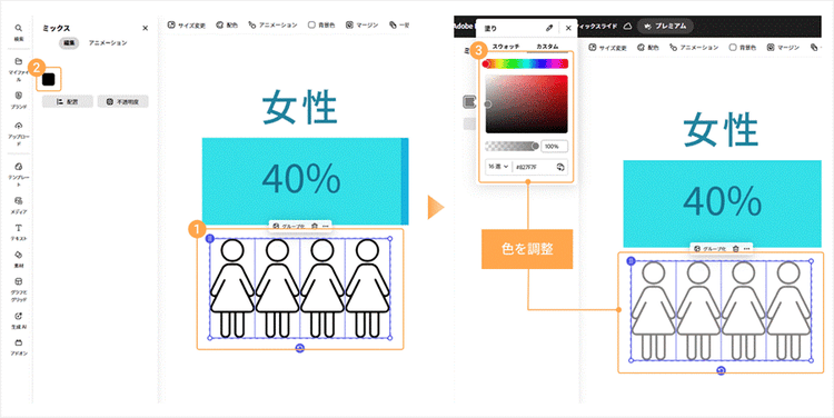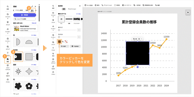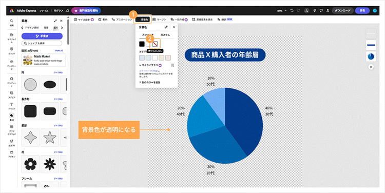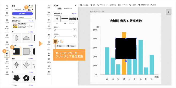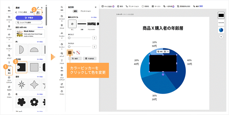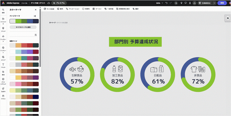 そこで続いては、Adobe Expressのデザイン機能を活用して、「伝わる」だけでなく「目を引く」グラフを作るためのアレンジ方法を2つご紹介します。