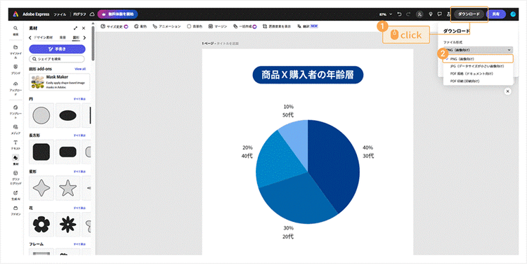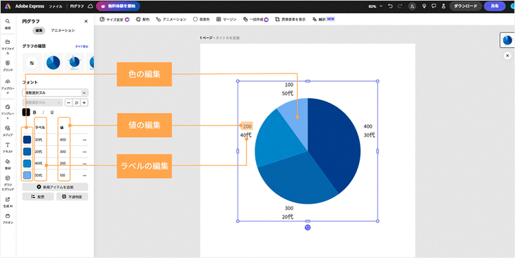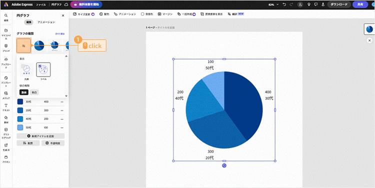 Adobe Expressを使えば、直感的な操作でグラフをカンタンに作成できます。