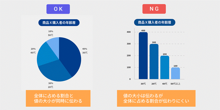 例えば、プレゼン資料やwebコンテンツなど、文章や数値だけでは伝わりにくい内容も、グラフを用いることでパッと一目で把握しやすくなります。