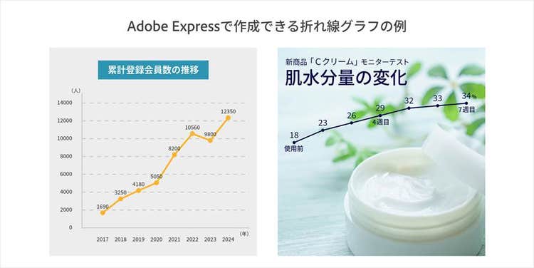 Adobe Expressを使えば、特別なデザインスキルがなくても、見やすく見栄えのよいグラフをカンタンに作成できます。