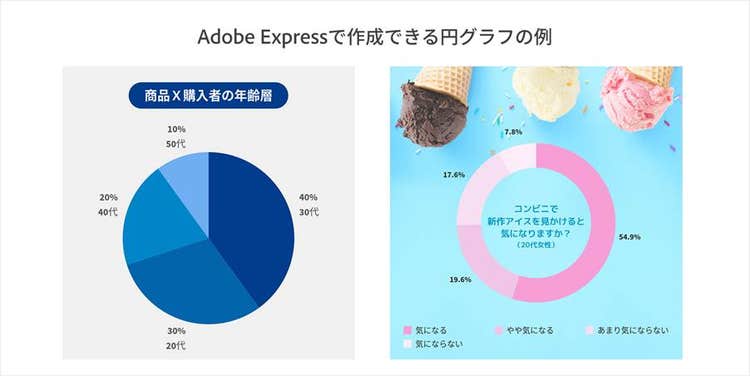 Adobe Expressなら、円グラフやドーナツチャートもカンタンに作成可能。