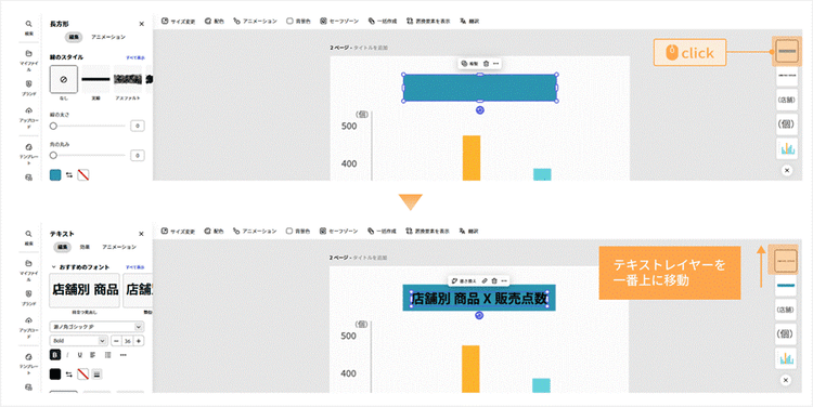 タイトルと長方形の重なり順を入れ替えます。