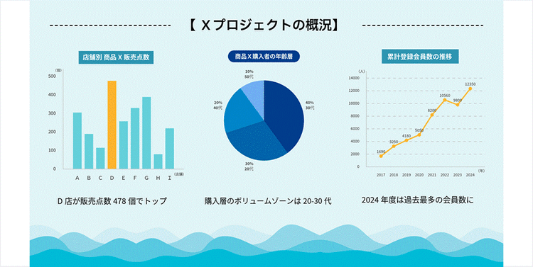 例えば、データに関連する写真を背景に使えば、グラフが何を示しているのかが一目で伝わりやすくなります。