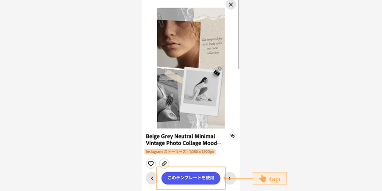 その中から気に入ったデザインを選び、「このテンプレートを使用」をタップして、編集を始めましょう。