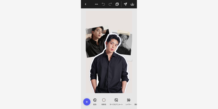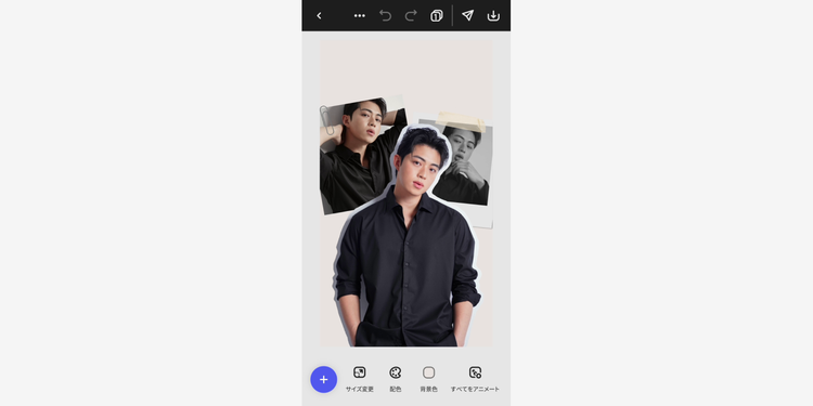 推しの写真を並べて、スタンプやフレーム、テキストなどを使って飾れば、さらに推しが引き立つ特別なコラージュに仕上がります。