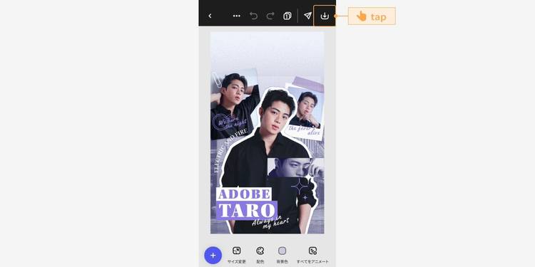 完成した推しコラージュは、ダウンロードのアイコンから保存できます。