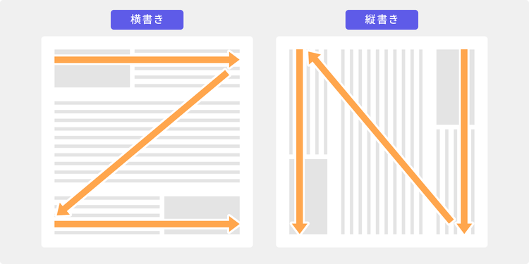 一般的には左上から右下へ、または右上から左下へと視線が動く傾向があります。